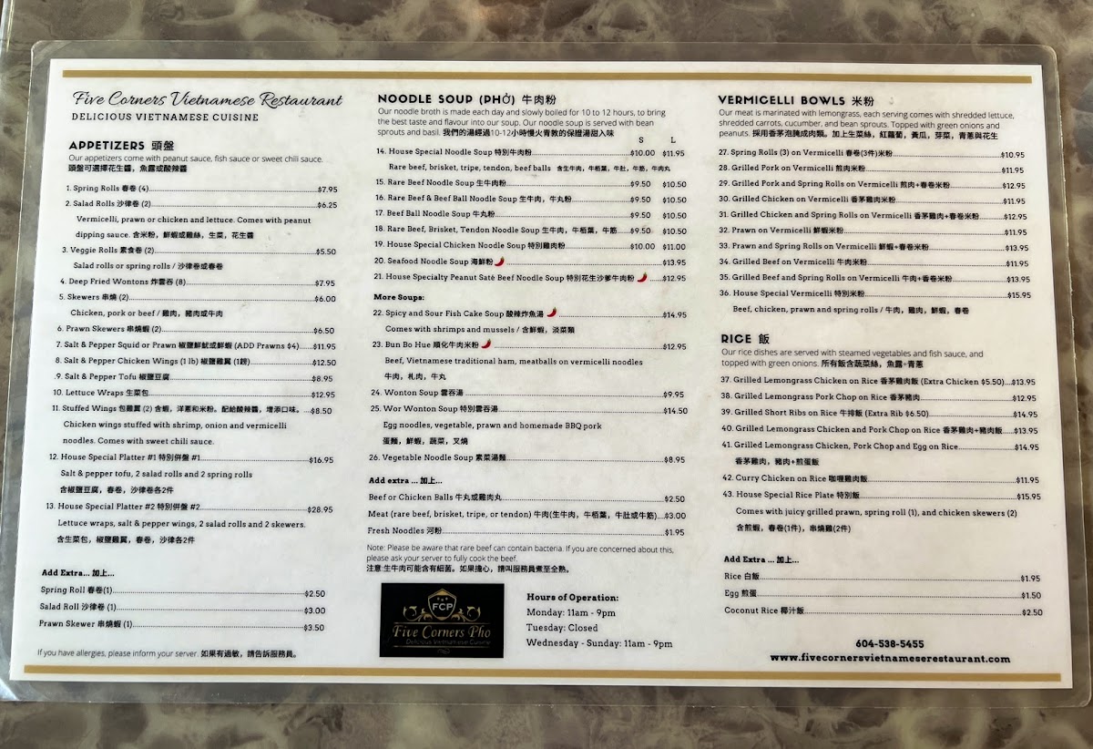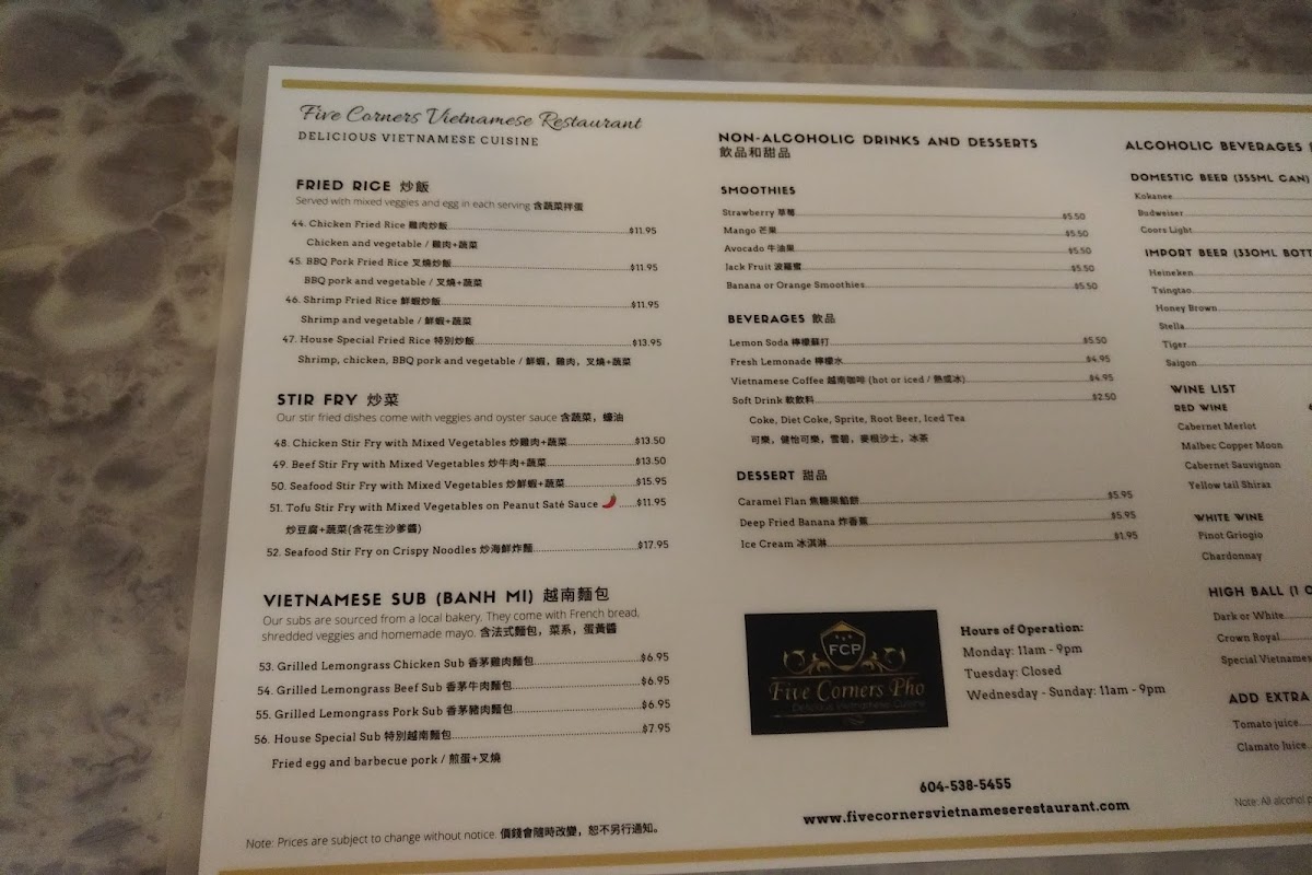 Welcome to Five Corners Vietnamese Restaurant, a hidden gem located in the heart of White Rock, BC. This charming eatery offers an authentic Vietnamese dining experience with a menu that boasts a variety of flavorful options.
